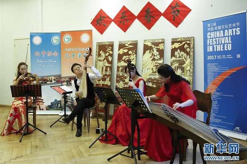 ????? 当日,4名中国音乐家走进布鲁塞尔孔子学院演奏经典民乐,庆祝春节来临。新华社记者叶平凡摄