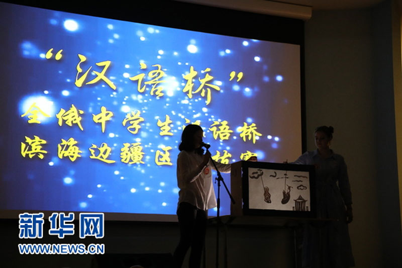 4月3日,俄罗斯符拉迪沃斯托克,“汉语桥”选拔赛现场。当日,全俄中学生“汉语桥”滨海边疆区选拔赛在俄罗斯远东城市符拉迪沃斯托克举行。新华网记者吴刚 摄