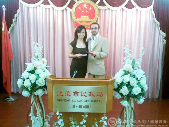 卡老师和丈夫在上海市民政局登记结婚