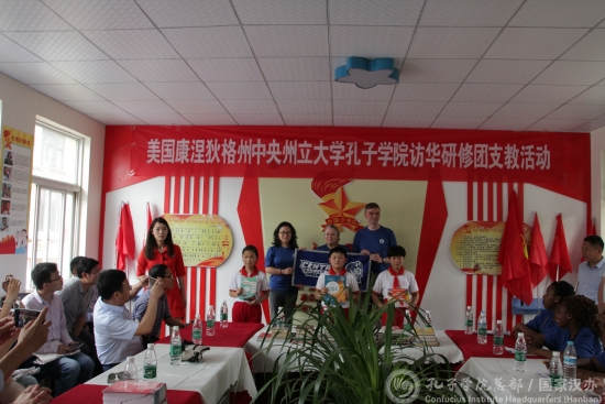 5月18日,美国康涅狄格州中央州立大学孔子学院访华研修团赴山东省第一书记驻东明县小井镇白佛寺村开展小学支教活动。此次活动由孔子学院中方合作院校山东师范大学组织,旨在让孔子学院学生访华团学习体验丰富的中国传统文化、近距离观察中国基础教育现状,感受中国的发展及变化。