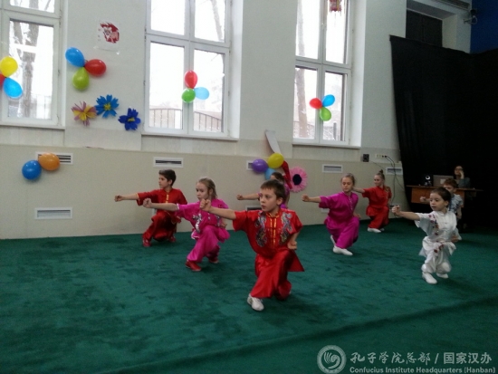 孔子学院在武术学校举办了“中国文化周”,书法比赛、绘画比赛和唱歌比赛等活动吸引了众多学生参加。2月12日,学校为各类比赛获奖学生颁奖,并举办了汉语教学公开课和综合汇演。公开课充分展示了俄罗斯小学汉语教学特色,教师们精心设计了以中俄友谊为主题的课堂教学,将听说读写融入课堂教学环节。综合汇演有诗歌朗诵、讲故事、唱歌、舞蹈和武术表演等节目,可谓“八仙过海”、精彩纷呈。