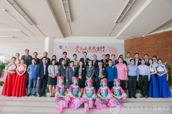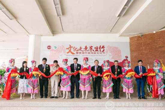 泰国玛哈沙拉坎大学孔子学院联合南宁市文化新闻出版广电局举行的“文化走亲东盟行”-暨首届中国戏曲文化节25日在玛哈沙拉坎大学隆重开幕。中国驻泰国孔敬总领事廖俊云、玛哈文化厅厅长巴帕·赛坦意汀力、南宁市文化新闻出版社广电局副局长李由亮、南宁市民族文化艺术研究院院长方宁、泰国东北部华文民校联谊会永远名誉主席洪泽荣、玛哈沙拉坎大学副校长巴拉育·斯维莱博士、玛哈沙拉坎大学孔子学院中方院长何东出席了此次活动。