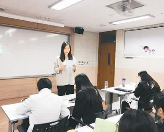 鲜于梦蝶在韩国弥邹忽外国语高中教汉语