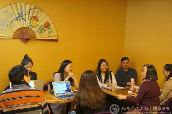 与会教师畅所欲言,集思广益,讨论了孔子学院即将启动的线上汉语学分课程、不同教学形式与汉语文化教学的结合、HSK考试相关事宜等内容,还对已经成型的《汉语教学大纲》提出了修改建议。此外,与会教师还分享了自己在教学过程中的经验看法,提出了在课堂上遇到的困惑和难题,大家共同讨论,寻找解决问题的办法。