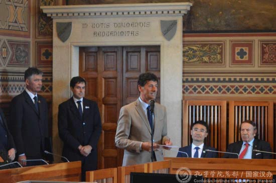 马泰奥·齐亚契首先对圣马力诺大学孔子学院建院三年以来所取得的成绩给予高度评价。他表示,孔子学院为两国人民之间的文化交流搭建了良好的平台。圣马力诺与中国尽管远隔千山万水,但可以通过文化交流拉近两国人民之间的距离。他说:“圣马力诺大学孔子学院自2015年成立以来,在短短几年的时间里举办多次有意义的文化活动,为圣马力诺人民打开了一扇了解中国文化的大门。我非常开心孩子们能够去北京参加夏令营,这必将是一个美好而难忘的经历,同时这也必将增强他们对中国文化的认识。我代表圣马力诺政府,感谢孔院为孩子们提供了这样宝贵的机会。”
