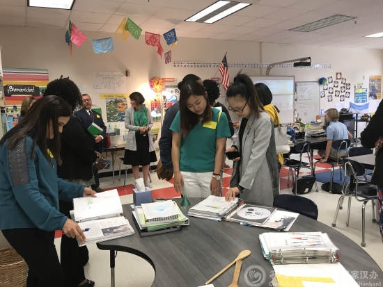 随后,在希尔顿首脑小学英才教育项目负责人珀杜·凯伦(Perdue Karen)的带领下,访问团一行走进该小学一至五年级的双语沉浸式课堂,参观教室,浏览教辅资料,并观摩了不同科目的中文沉浸式教学课堂。