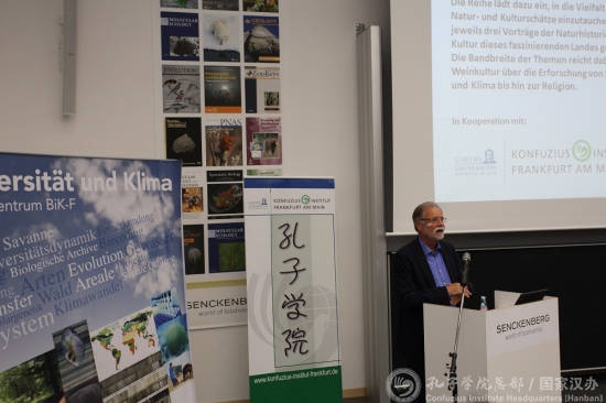 森根堡自然研究学会会长莫斯布鲁格(Volker Mosbrugger)在致辞中对此次系列讲座给予了高度评价,肯定了自然科学学会与孔院的合作成果,并期待双方未来开展更多、更深层次的交流。