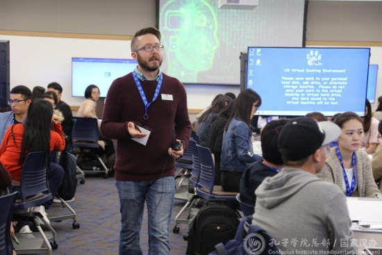 美国本土外语教学专家劳拉·洛奇组织学员模拟教学场景