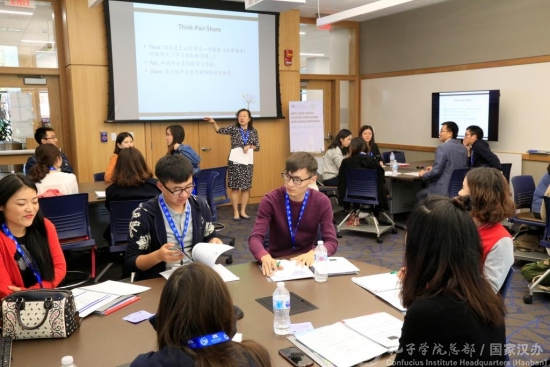 在分论坛环节,与会专家学者们带来了精彩、实用的研究报告,包括《学生参与途径》《加强目标语的可理解性输入》《创建充满正能量的中文学习环境》《借助形成性评价提高教学效果》《以AP课程为例谈有效的课堂教学行为》以及《语言教学中学生参与的途径》等。其中,修华静作了题为《美国学校文化面面观》的报告,介绍了美国教育发展历程、美国学校概况以及美国学校文化,指导汉语教师志愿者如何与所在学校校长、外方教师和学生家长进行沟通。美国AP中文教学专家阮勇强作了题为《以中文AP课程为例:谈有效的课堂教学行为》的报告,解读了中文AP考题的评价标准,着重介绍了反向设计和任务型教学法在汉语教学中的应用。