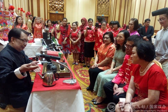 本次成果展涉及到本土教师培训和研修的各项内容,中国茶艺、美食、书法、脸谱等,配上老师们鲜亮的中国旗袍、唐装,浓浓的中国文化气息弥漫在会场大厅。