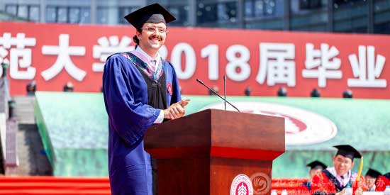 毕业当天,他的父母也专程从意大利赶到上海,见证他的重要时刻。这个阳光幽默的男生用一口流利的普通话讲述了他在华师大的故事,不时还穿插两句上海话。他认为自己来华师大读书是改变人生的契机,并鼓励大家“去开始一段新的冒险,为一个目标去拼搏,永远不会太晚!”