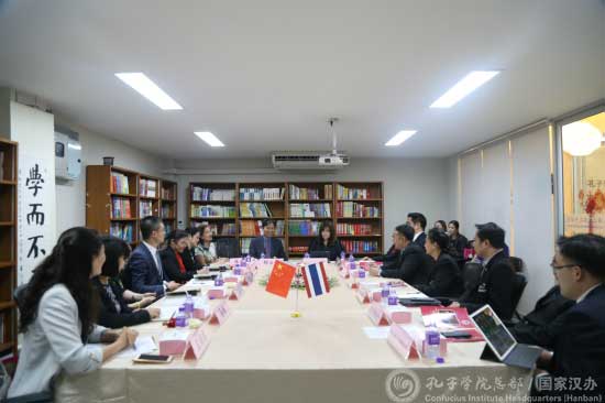当天,郁云峰一行还访问了中国驻泰大使馆,临时代办杨欣会见代表团。郁云峰感谢大使馆长期以来对孔子学院工作的支持,并介绍了全球孔子学院的发展情况及近期工作思路。杨欣希望mobilebet365官网继续支持泰国的汉语教学工作,指导在泰孔子学院更好地满足泰国人民汉语学习的需求,积极配合泰国经济发展战略,培养懂汉语的职业人才,做中泰友谊的纽带和桥梁。